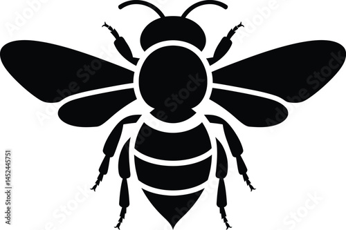 Fototapeta premium Simple black silhouette of a bee with wings and segmented body, Minimalist...