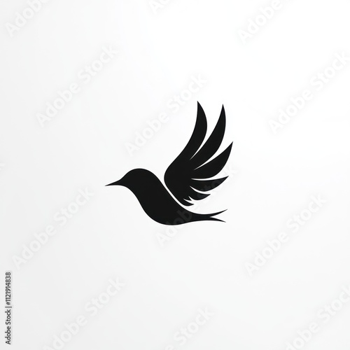 © lestari, Obraz premium Simple black silhouette of a bird in flight, isolated on white background.
