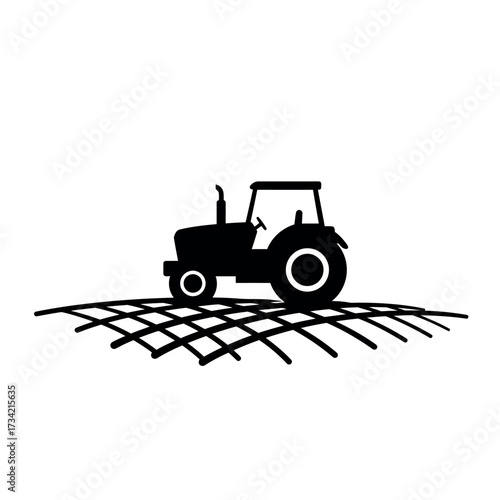 Fototapeta premium Simple black silhouette of a farm tractor vehicle.