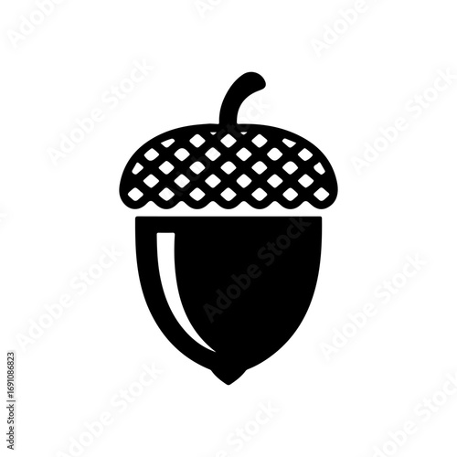 © Victor Gallery, Obraz premium Simple black silhouette of an acorn with a textured cap isolated on a vector