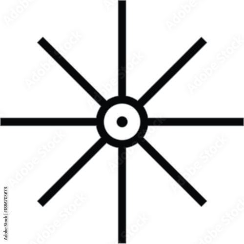 © MdSobuj, Obraz premium Simple black sunburst icon with center circle and eight rays, minimal line symbol for light, energy and interface design