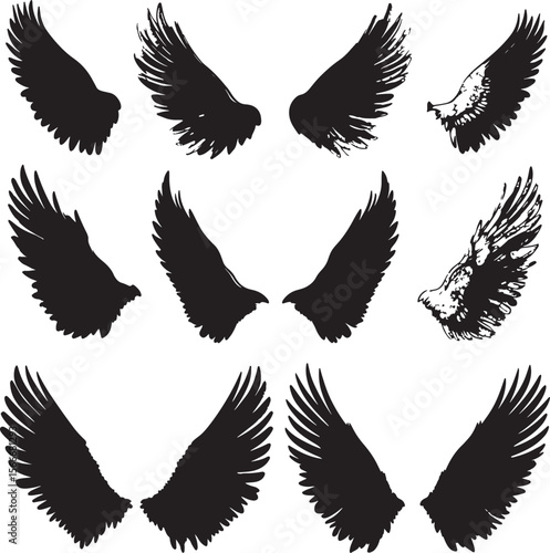 © Ty, Obraz premium Simple black vector silhouettes of wings in a minimalist design.