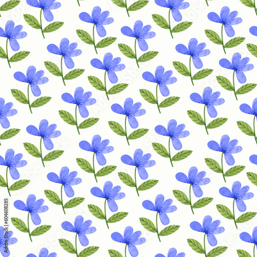Fototapeta premium Simple blue flowers, cute pattern. Watercolor illustration, summer cute motif...