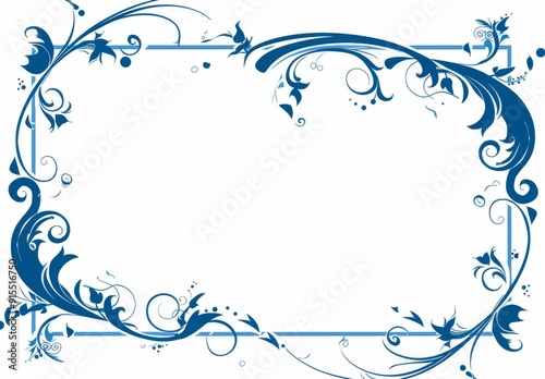 Obraz premium Simple Blue Frame Design for Award Certificate with Dots and Swirls, White Background, Vector Graphics