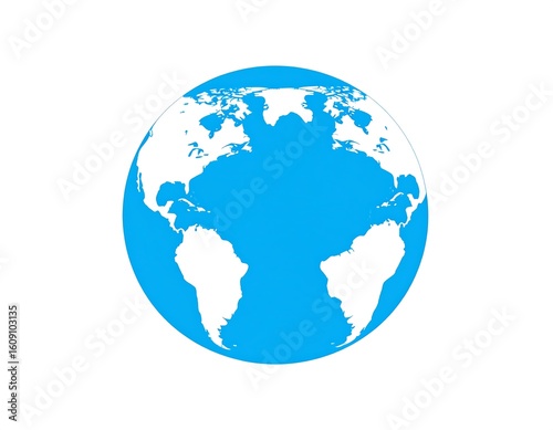 Naklejka premium Simple blue globe, continents outlined in white