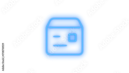 © MstAfsanaSiddika, Fototapeta premium Simple blue neon outline icon representing a file or document with lines and a square, isolated on transparent background for digital and web design concepts.