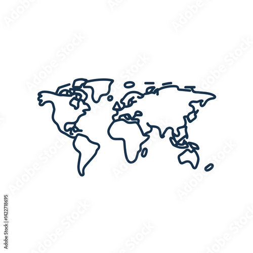 Fototapeta premium Simple Blue Outline World Map Globe on Transparent Background