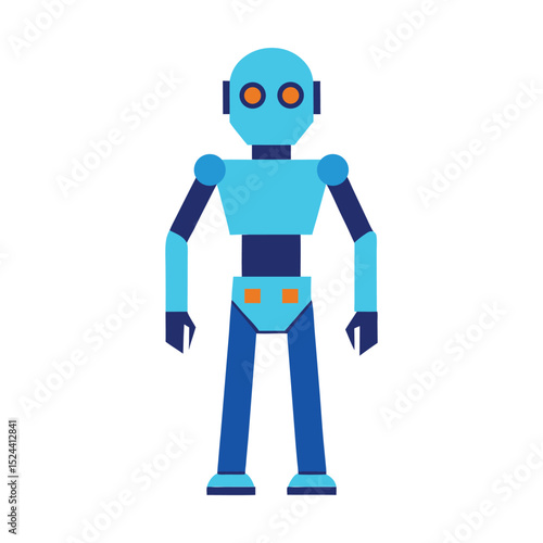 Fototapeta premium Simple blue robot illustration standing tall isolated on white background
