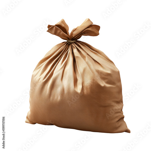 © indah, Obraz premium Simple Brown Fabric Bag with Tied Bow Isolated on transparent background