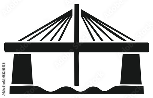 © ITyr, Obraz premium Simple Cable-stayed Bridge Icon, Suspension Bridge Vector Graphic, Modern Transportation Construction Silhouette over Water