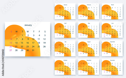 Fototapeta premium simple calendar 2019 yesr, Stock vector design eps10.