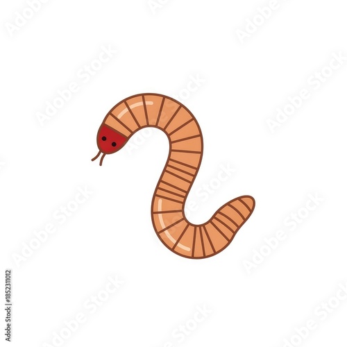 Fototapeta premium Simple Cartoon Illustration of a Brown Mealworm with Red Head.