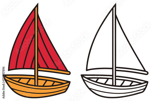 © Design_ mn, Obraz premium Simple Cartoon Sailboat Illustration Red and White Coloring Page