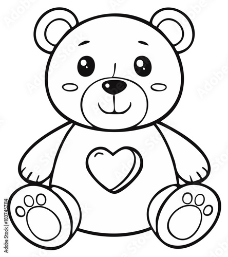 © Юлія Пархоменко, Obraz premium Simple cartoon teddy bear with a heart on its chest for coloring
