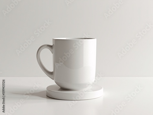 © Studio VIP, Obraz premium Simple ceramic cup with white coating and handle, displayed upright on plain background for product or branding design, suitable for mockup design