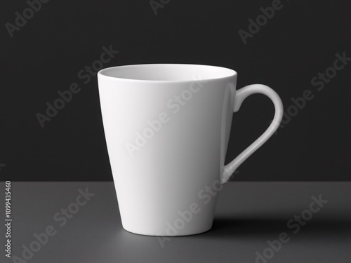 © Studio VIP, Obraz premium Simple ceramic cup with white coating and handle, displayed upright on plain background for product or branding design, suitable for mockup design