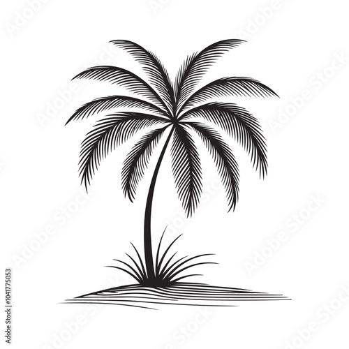 © Picture Paradise, Fototapeta premium Simple Coconut Palm Tree Silhouette Icon on White Canvas.