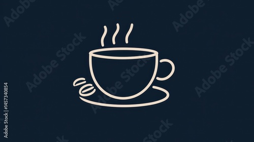 Obraz premium Simple coffee icon with steam rising from a cup, next to some beans, on a dark background