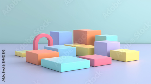 Obraz premium シンプルカラフルなキューブデザイン背景_simple colorful cube design background