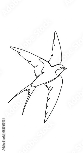 © Ariestia, Obraz premium Simple continuous line drawing depicts a small avian creature in dynamic flight