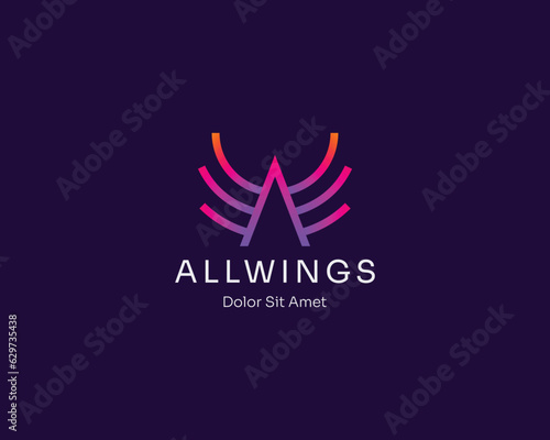 Obraz premium Simple creative line letter a with wings logo gradient