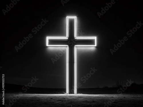 © Danicha, Naklejka premium Simple Cross Outline in Black and White with Clean Lines Ideal for Religious and Spiritual Themes