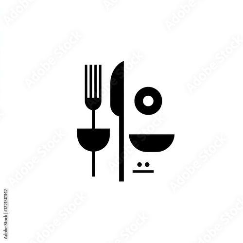 Fototapeta premium Simple cutlery and bowl icon, minimalist food design, website use