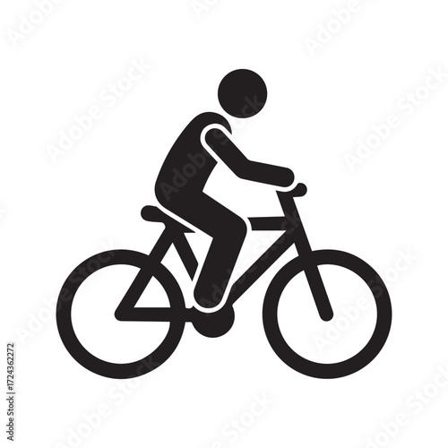 Fototapeta premium Simple cyclist icon, black silhouette of a person riding a bicycle. Symbol for cycling, transportation, or sport.