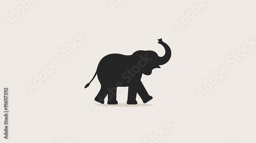 Obraz premium Simple 2D vector art of an elephant lifting its trunk, minimalist style, clean and basic design, uncomplicated and plain, perfect for commercial use