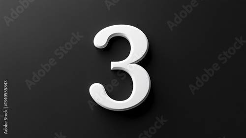 © Johannes, Fototapeta premium simple 3d white 3 number isolated on black background