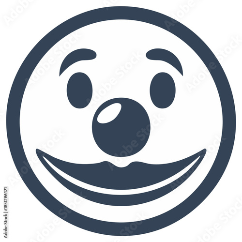 © Андрій О., Fototapeta premium Simple Dark Blue Clown Face Icon with Big Smile and Red Nose