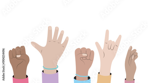 Obraz premium Simple Diverse Hands with Different Gestures Flat Design Illustration.
