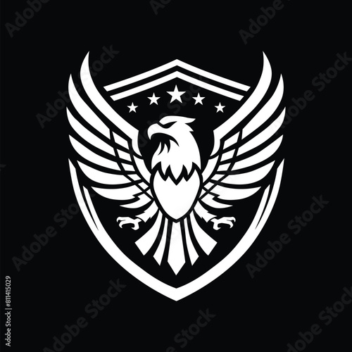 © HimawanRushX, Obraz premium Simple Eagle Logo Flapping Its Wings with some Stars