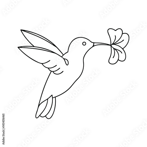 Fototapeta premium Simple elegant outline drawing of a hummingbird carrying a delicate flower...