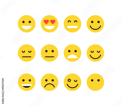 © PaleStudio, Fototapeta premium Simple expressions and yellow cartoon smile flat illustration.