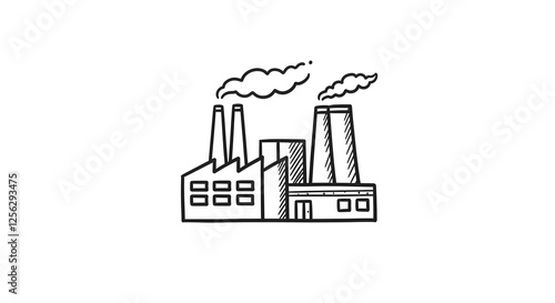 Obraz premium Simple Factory Outline with Smoke Stacks on White Background Illustration....