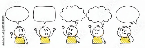 © mediastok.ai, Obraz premium Simple figures with thoughts and speech bubbles