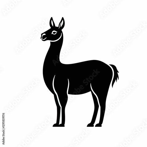 © Sabellatint, Obraz premium Simple flat 2D icon black llama isolated on transparent background, vector, flat design, animation design, vector, flat design, animation design, simple flat 2D icon, minimalist design, clipart