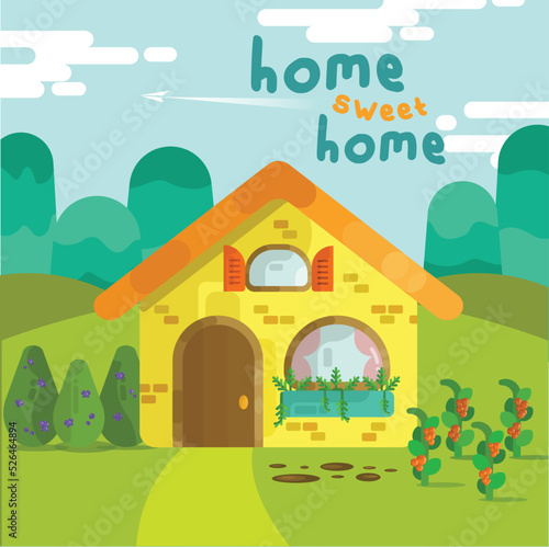 Fototapeta premium simple flat design house cute illustration for kids.