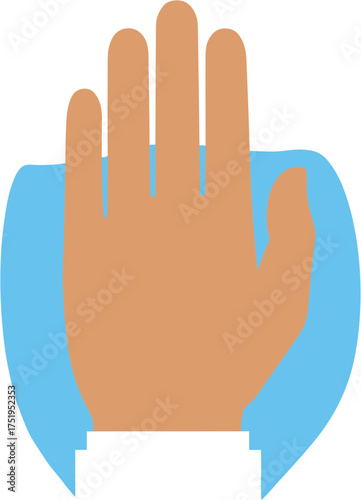 © Niricon Works, Obraz premium Simple Flat Design Raised Hand with Blue Background Graphic Element