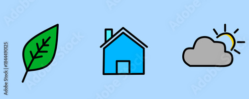 Obraz premium Simple Flat Icon Set Vector Illustration, Leaf Home and Weather Icons with Bold Outline Style
