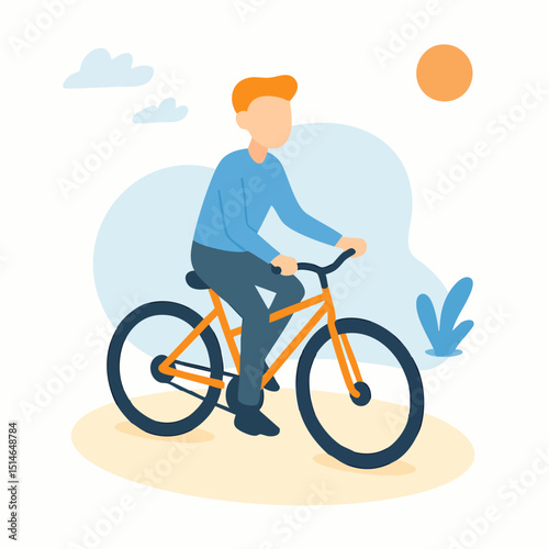© Mariposa1818, Fototapeta premium Simple Flat Illustration of a Man Riding Bicycle Outdoor Activity