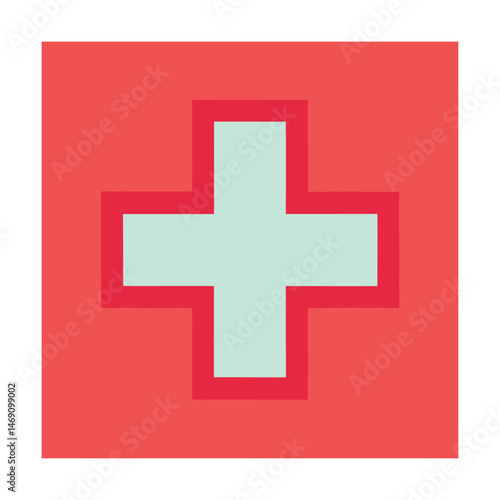 © Salim, Fototapeta premium Simple flat illustration of a medical cross symbol on a red square background