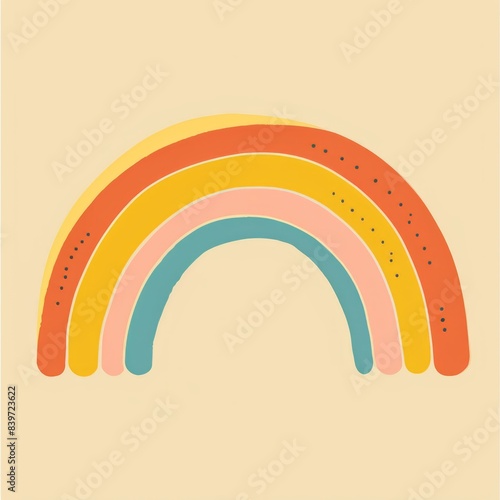 Obraz premium Simple flat illustration of a rainbow in pastel yellow, orange, pink and blue...