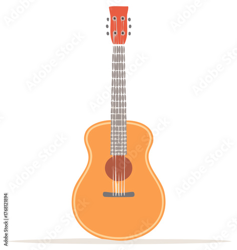 Fototapeta premium Simple flat vector illustration of an orange acoustic guitar musical instrument