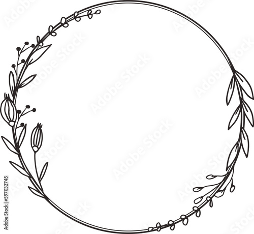 Obraz premium Simple Floral border with hand drawn leaves and flowers