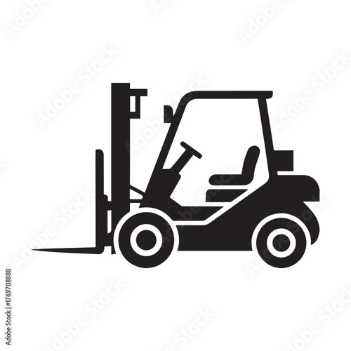 © JESMIN, Fototapeta premium Simple forklift truck with forks vector silhouette icon on white background
