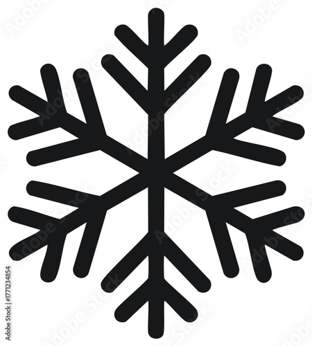 © Олександр Романюк, Obraz premium Simple Geometric Black Snowflake Icon Silhouette for Winter Cold Season Design
