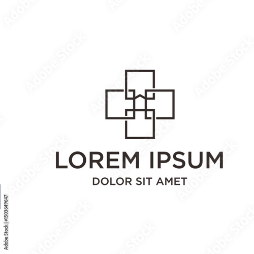Obraz premium Simple Geometric Interlocking Square Shape Logo for Business Branding Identity