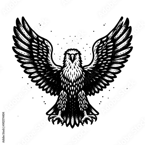 © makmur, Obraz premium Simple Golden Eagle Flapping Its Wings Vector Design – Vintage Logo & Retro Illustration